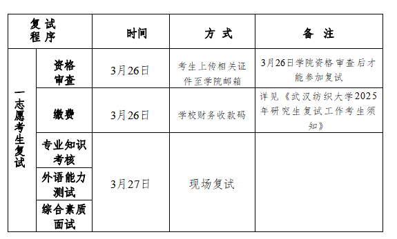复试将集中在武汉纺织大学规定的考场内开展现场复试工作,复试过程全程录音录像。