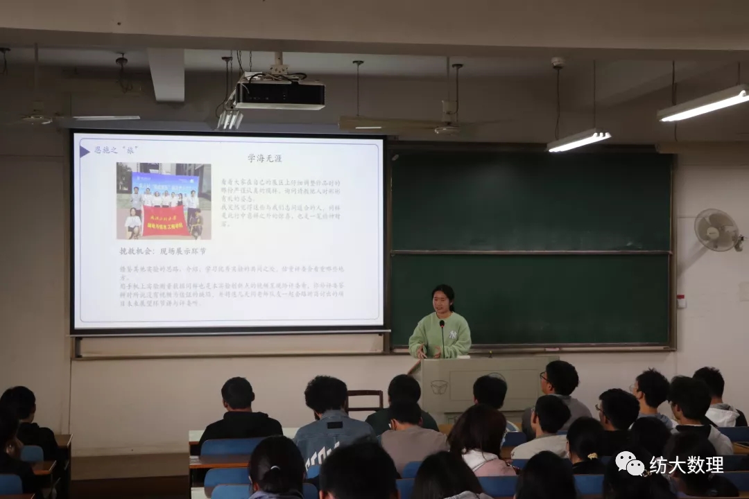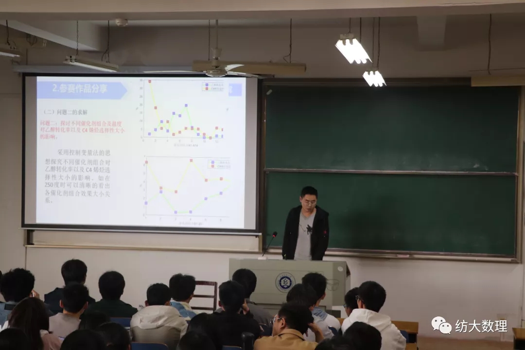 在此之后,员工代表马清奎分享了自己的数学建模心得体会和作品。他向同学们分享宝贵的参赛经验 ,并建议同学们做好基础知识准备,找好队友,及时总结经验。员工代表张驰以分享课题《知微见著——创新源于细节》的方式,介绍了参赛的完整过程。他提出竞赛可以提高表达能力,考验临场反应,锻炼心理素质,提升自我能力,开拓眼界,也会成为考研就业的加分项。员工代表李瑾以幽默的方式给同学们分享课题《色彩的秘密-虹与霓的设计与再现》,她向大家描述了在研究过程中遇到的难题,以及一波三折的参赛经历和丰富的收获。她告诉同学们要同优秀的人前行,从优秀的力量中汲取自己的力量,道阻且长,行且将至。