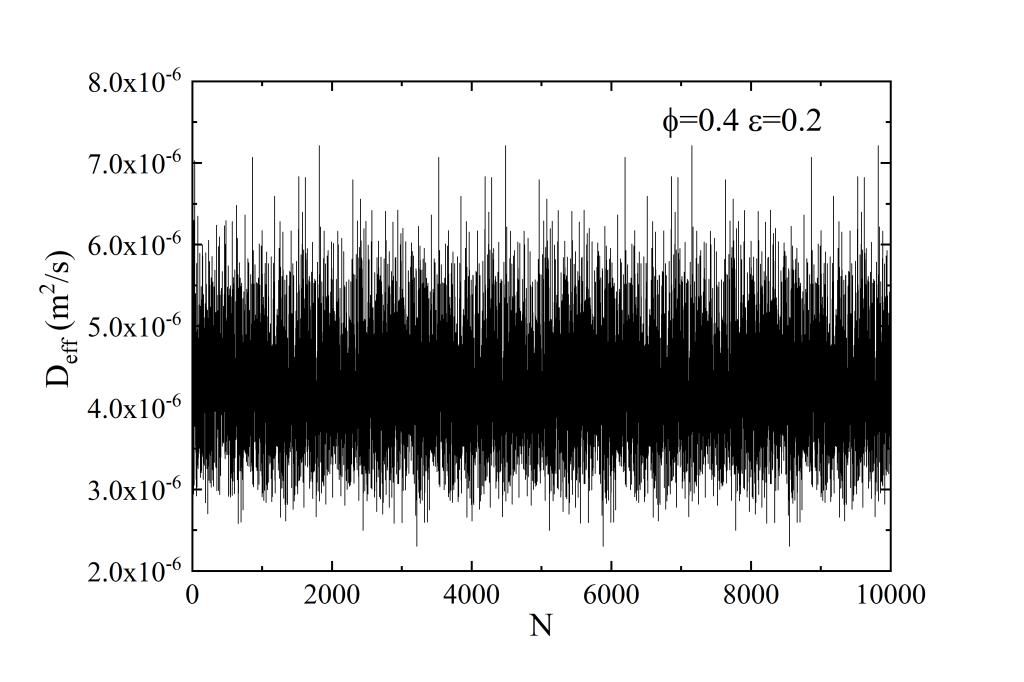 《Fractals》(IF:3.665)在线接收题为:Effective gas diffusion coefficient of fractal porous media with rough surfaces by Monte Carlo simulations的论文,该论文通讯作者为公司应用数学与交叉科学研究中心郑仟副教授,第一作者为研究生尹作壮同学。气体扩散系数是表征多孔介质输运特性的一个重要参数。本文基于微观毛细管的分形特征,采用蒙特卡罗方法研究了毛细管表面粗糙度对气体扩散的影响,提出了粗糙表面多孔介质有效气体扩散系数的概率模型。该模型表示为多孔介质几何参数的函数,如孔隙度、孔隙分形维数、迂曲度分形维数和相对粗糙度。论文着重探讨了相对粗糙度对有效气体扩散系数的影响,结果表明,粗糙表面多孔介质的有效气体扩散系数随着相对粗糙度的增加而减小。此外,该研究还详细分析了多孔介质其它结构参数对气体扩散的影响。该模拟方法可推广用于粗糙表面分形多孔介质中的气体流动和传热过程的分析。
