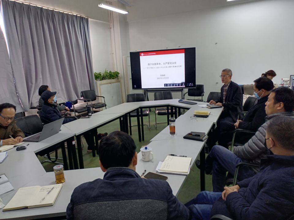 11月24日上午,数理科学公司党委书记段溢波以《勇于自我革命,从严管党治党》为题讲廉政党课,要求廉政警钟长鸣。公司党政班子成员、系(中心)主任、支部书记、工会主席、督导组组长等参加会议。
