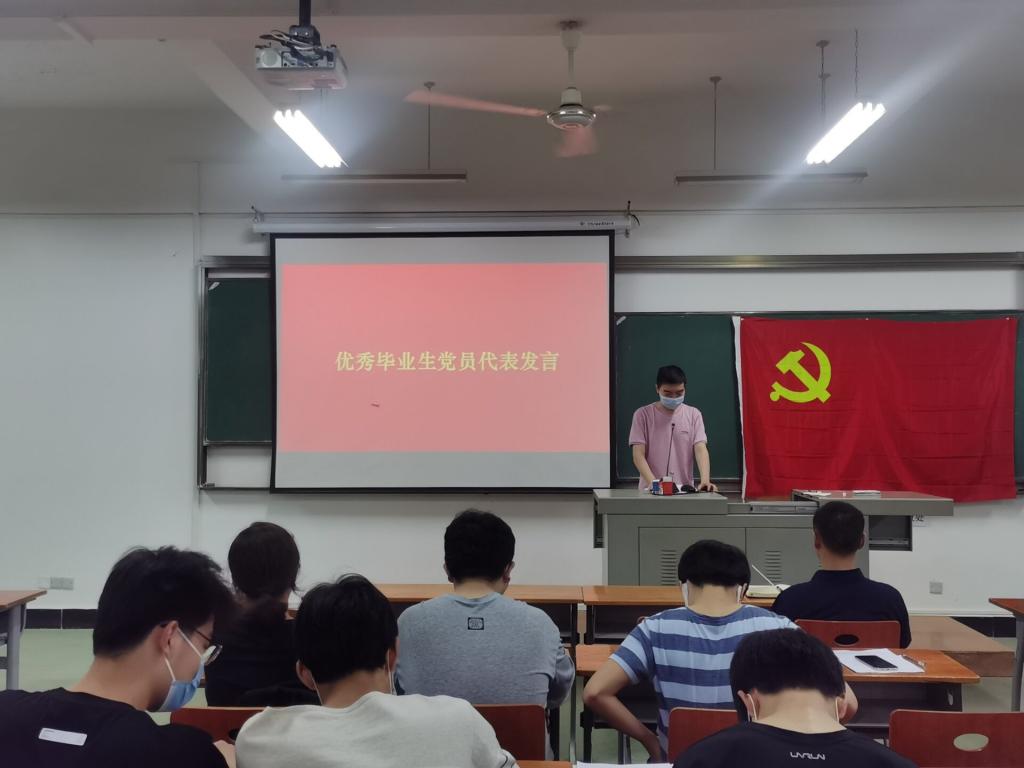 优秀毕业生党员代表李吉鹏同志发表感言:希望新党员以优秀的老党员为榜样,在学习和工作中不断打造自己,积极融入到党的群众路线中。也希望毕业生党员在社会中的各种角色中,辛勤工作、不断努力来回报社会,回报母校。