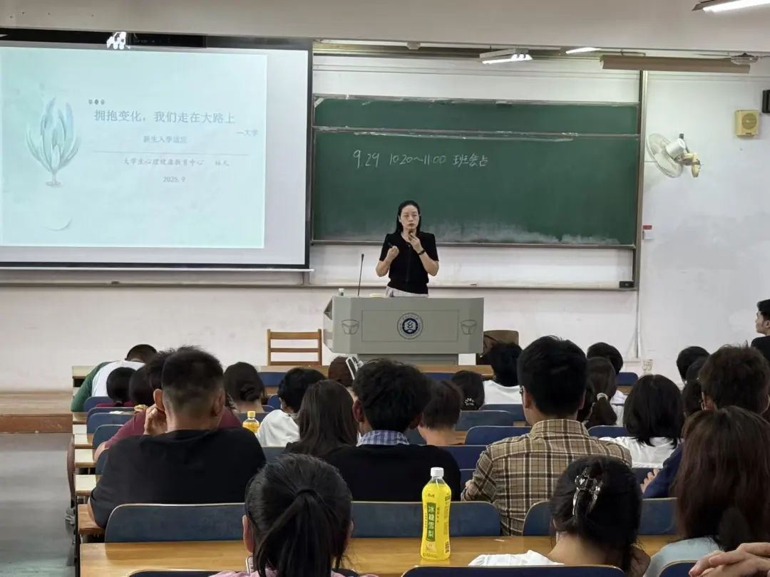 9月29日,老员工心理健康中心林凡老师在崇志楼作“拥抱变化,我们走在大路上”专题讲座,以人际矛盾、学业焦虑等真实案例引导新生与自我对话、与他人共情。