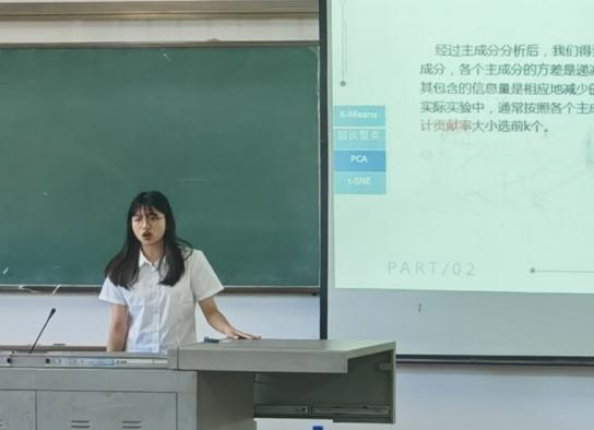 7名18级本科生做了主题报告。信科11802班芮烁同学向我们介绍了卷积神经网络及其在手写数字识别中的应用,并从研究动机、网络的原理、模型测试、卷积神经网络的应用等方面展开了介绍。信科11802班朱杨锋同学通过对湖北省人口现状分析,基于GM(1,1)模型的人口预测与基于BP神经网络的GM(1,1)模型改进,对“十四五”时期湖北省人口进行了预测分析。应数11801班杨菲同学报告了线上化学分子结构转换服务器的开发,从服务器设计,服务器需求分析,分析开发前景与学习准备四个板块讲述了自己的课题研究内容。信科11801班云文龙同学开展了老员工消费水平的调查,重点探索了网红经济对大学消费水平的影响,并根据调查结果从政府、公司和个人等角度给出了建设性的建议。信科11801班陈婉馨同学报告了几种聚类算法在银行营销数据中的比较研究,分别介绍K-Means聚类算法、层次聚类算法、主成分分析法、t-SNE四种算法,通过不同算法的对比得到了不同情况下的最优算法。信科11801班黄斌同学开展了湖北省第三产业影响因素的分析,从第三产业的发展现状、发展优势与劣势等方面向大家介绍了课题的主要研究内容。应数11801班陈安龙同学的研究课题是基于PK-means++聚类和加权的k近邻算法研究,通过现有k近邻算法的不足,从算法角度和数据角度提出了改进的想法,并用实验分析对其结果进行了比较。