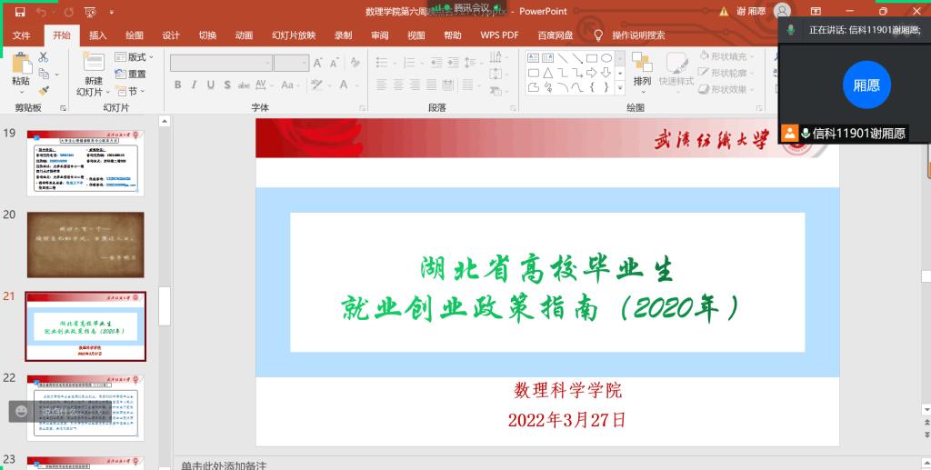 为培养数理公司同学们具有良好的创业素质和激发树立正确的择业观和价值观,在创业中培养数理公司同学们的创业精神,认识自我,树立自信心。3月27日晚,十大体育网站组织召开创新创业思想教育主题班会,数理公司各班同学悉数参与此次主题班会,班会由各班班长,团支书主持。