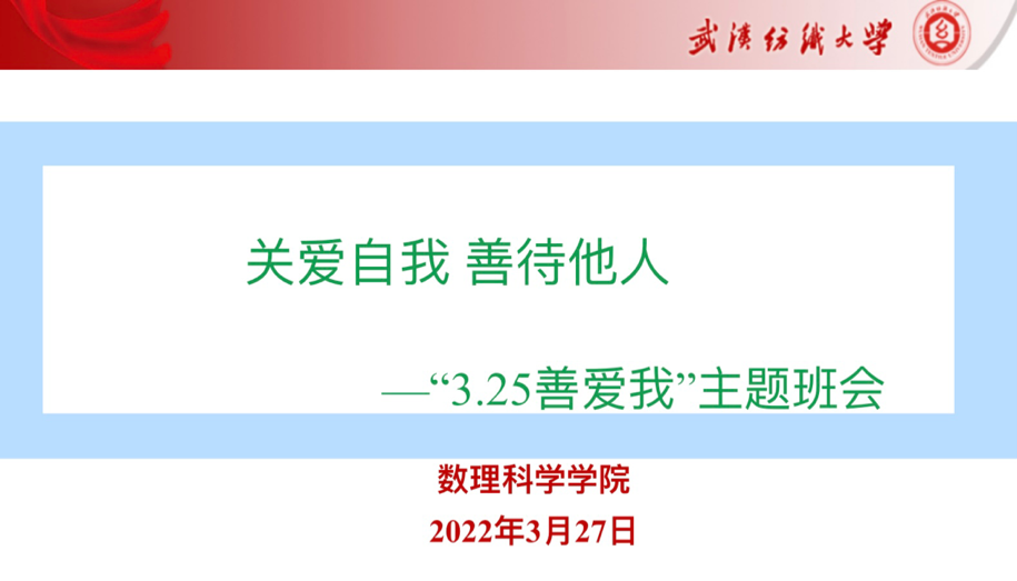 为了提高解决老员工心理健康问题的实效性,营造良好心理健康教育氛围,数理公司于3月份开展“3.25善爱我”作品征集、“关爱自我,善待他人”主题班会等一系列活动。