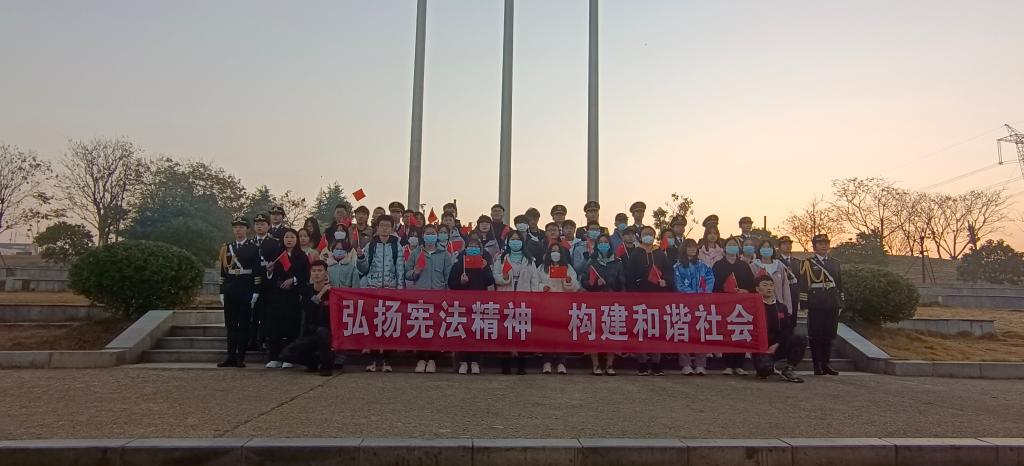为传递“依宪治国”、“依宪执政”的理念,增强员工的宪法意识,弘扬宪法精神。12月4日清晨,十大体育网站国旗护卫队于阳光校区田径运动场隆重举行“弘扬宪法精神,建设美好校园”升国旗主题活动。十大体育网站国旗护卫队成员及员工代表们参与此次活动。