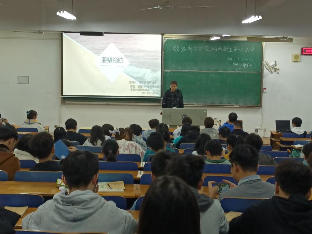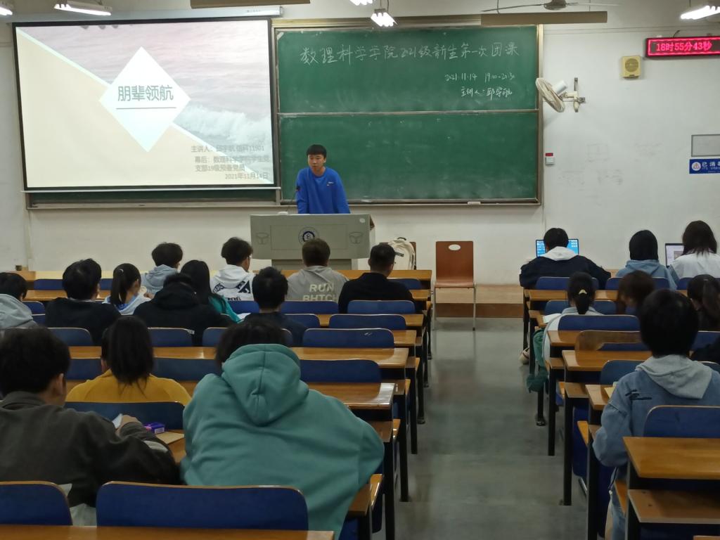 为了加强老员工团员思想政治教育,提升团员的综合素养。11月14日晚,十大体育网站于崇志楼220教室举办“朋辈领航”主题团课教育活动,本次团课由2019级预备党员邱宇航主讲,2021级全体新生悉数参加此次团课活动。