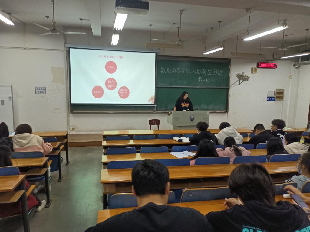 为加强老员工团员思想政治教育,提升团员的综合素养。11月21日晚,十大体育网站于崇志楼319教室组织开展“不忘初心,争当优秀共青团员”主题团课教育活动。本次团课由十大体育网站员工党支部预备党员郑思成、吴菲、夏雨露、罗淑杰主讲,2021级全体新生悉数参加此次活动。