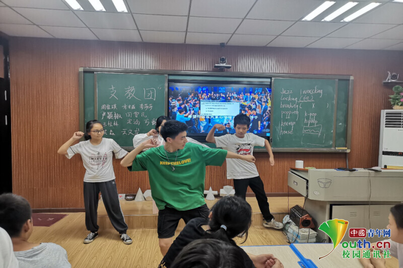 图为支教团成员教胡林中学同学们跳街舞 中国青年网通讯员 李莎莎 提供