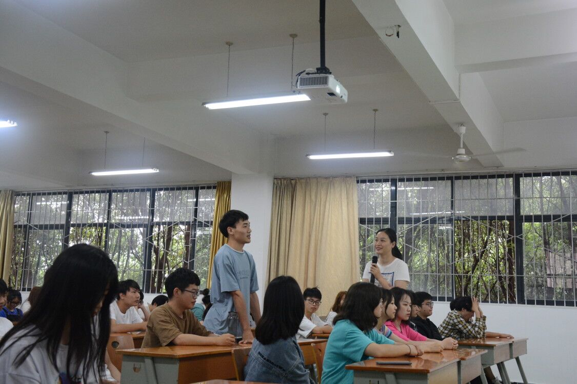 林凡老师从环境资源、生活方式、学习内容、生涯规划等方面,以“生命影响生命,成长带动成长”为主题,论述了心理健康教育对我们成长的必要性,以及生命教育的重要性。老员工常见的心理危机类型有心理健康、人际交往、学习与发展、职业与发展等方面,林凡老师通过与大家互动讨论、播放心理教育短视频,阐述了心理教育中“听与说”的奥妙,为同学们提供了处理危机的小妙招。