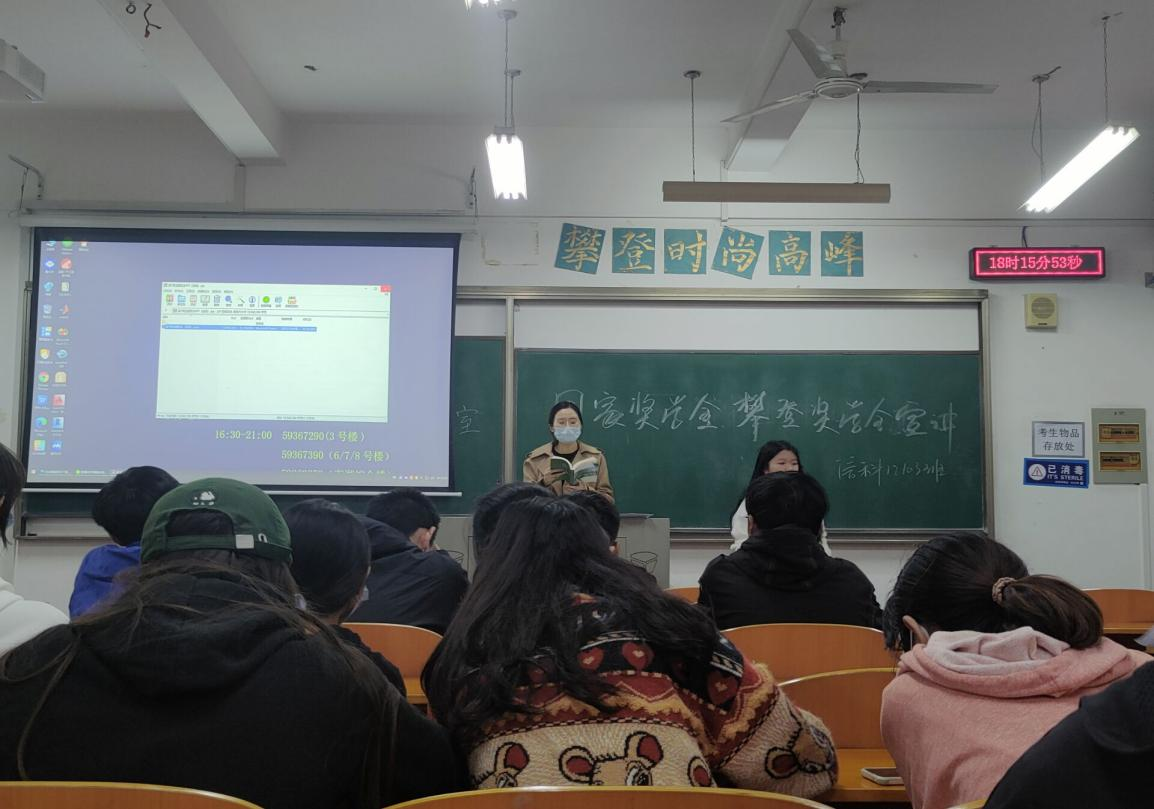 为进一步加强奖助学金政策宣传力度,做好国家奖助学金的评选和管理工作,十大体育网站各班于10月9日下午开展奖助学金政策宣讲主题班会,辅导员方媛及各班班主任悉数参与此次班会。