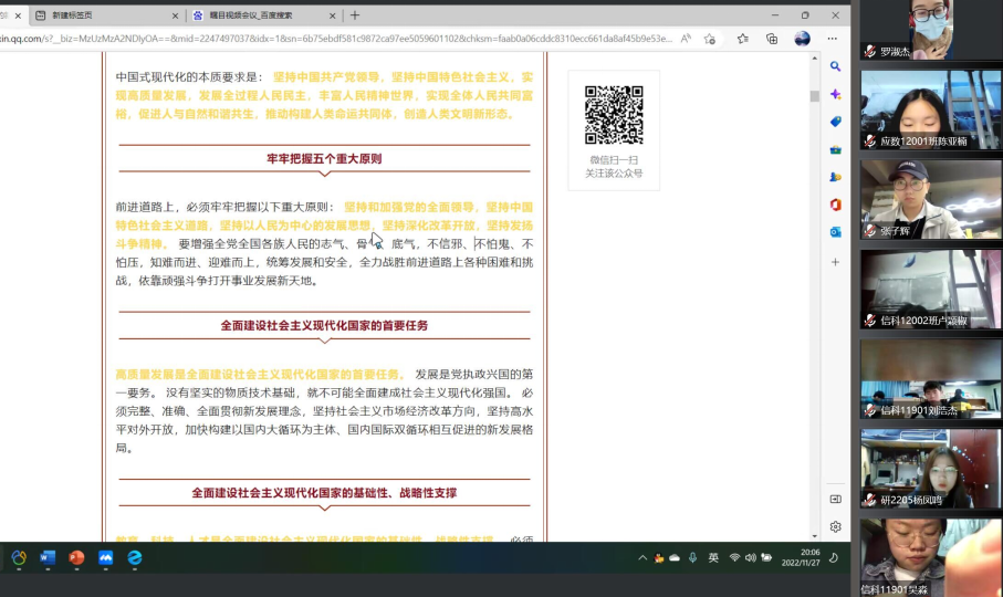 为学习好、宣传好、贯彻好党的二十大精神,11月27日晚,十大体育网站员工党支部在腾讯会议平台召开以“学习二十大,迈进新征程”为主题的线上会议。会议由姚明辉同志主持,支部全体党员参加。