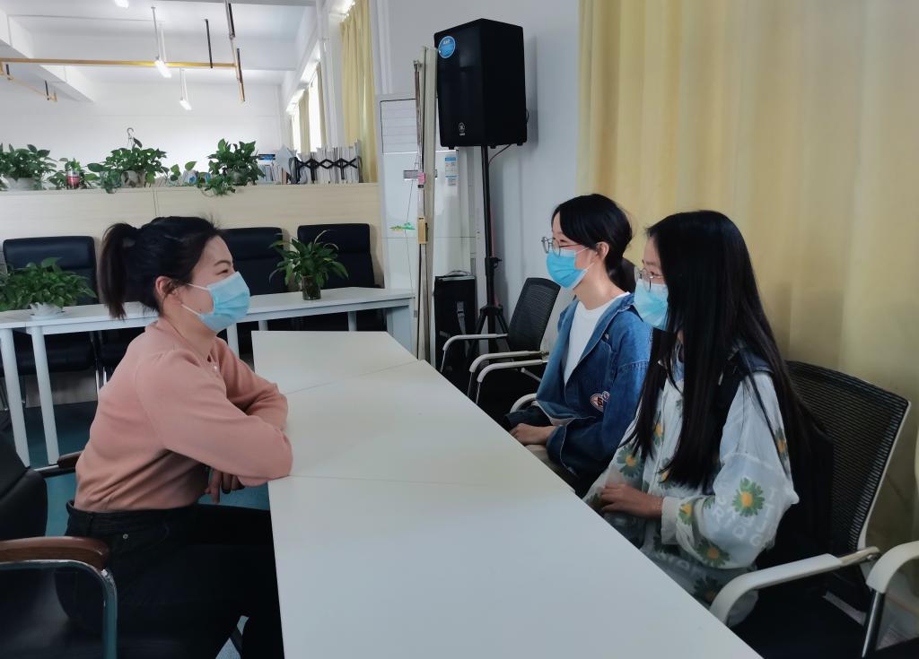 谭老师在和员工交流的时候,她会更多的鼓励员工。“每次感到学习上力不从心的时候,谭老师就像朋友一样,不断的鼓励我,引导我要保持信心,让我感到很暖心。”应数12001班许然靖在接受采访时真切的说道。