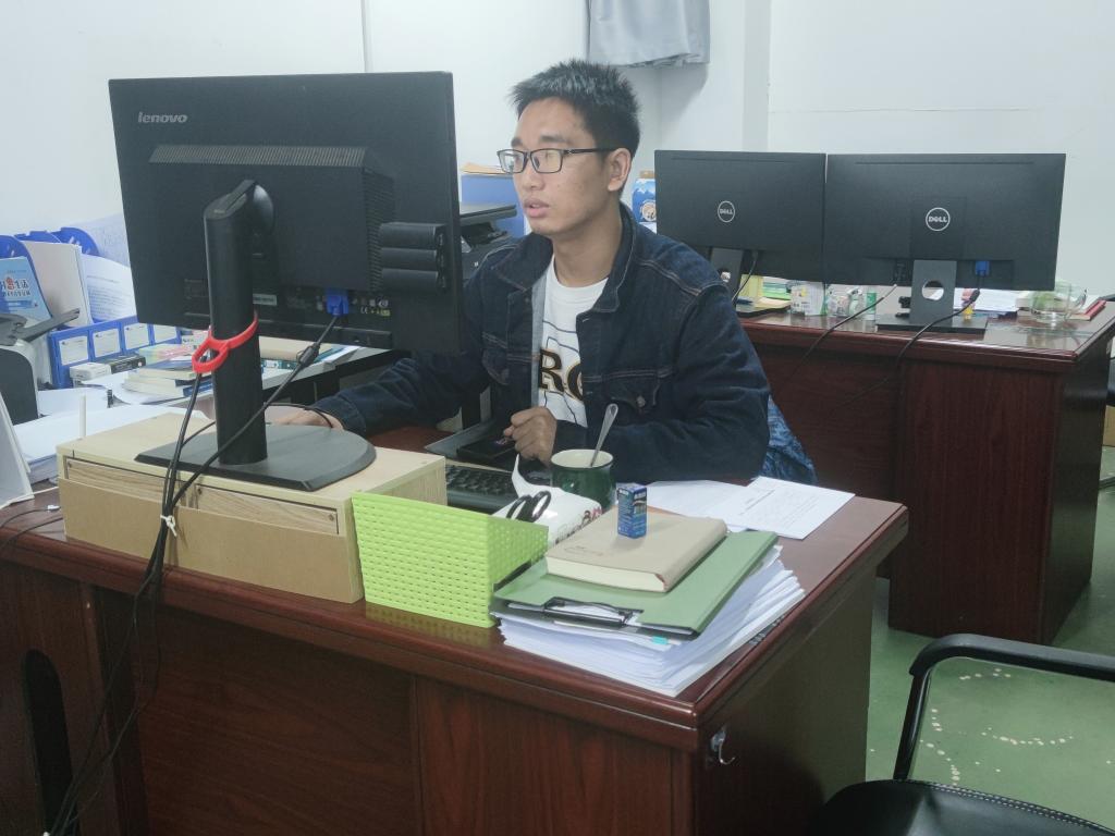 每当踏进四栋二楼的数理公司办公室,总能看见一个黝黑的汉子,或是伏案工作,或是交流谈心。黑色镜框下的眼里仿佛总有光芒在闪烁。班里的员工见到他,总会亲切的喊他一句“熊导”,然后就“匆匆”离开。