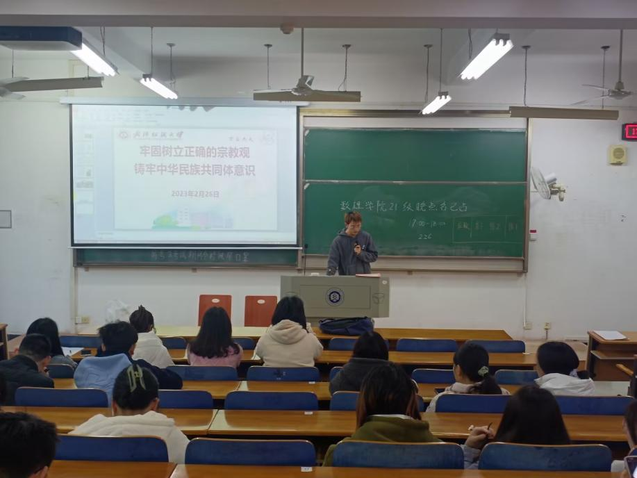 为筑牢同学们抵制宗教渗透校园的思想防线,进一步净化校园文化环境,引导同学们形成正确的世界观、人生观、价值观,十大体育网站于2月26日下午在崇文楼组织开展“抵制宗教渗透,防范校园传教”主题班会,带领同学们学习我国宗教政策相关内容。本次班会由各班班长主持,各年级辅导员、各班班主任及全体员工参与本次会议。
