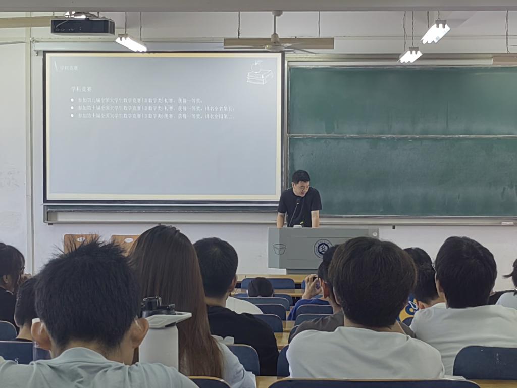 在本次论坛中,首先由毛耀老师向我们介绍参加数学竞赛的重要意义并鼓励同学们积极参加数学竞赛。接着由信科11901班吴仔航同学、信科11901班邱宇航同学向大家讲解他们的优秀毕业设计《十大体育网站二手市场小程序的设计与实现》、《药物机械分子的机器学习预测》。在讲解的过程中,他们都提到了只有多参加学术竞赛活动来拓宽自己的视野,才能更好地学习数学、提高能力。随后应数11901班罗淑杰同学向大家分享了她的考研心得和体会,以及如何充分利用时间来备战考研。最后由十大体育网站优秀毕业生周钰学长向同学们分享他在纺大参与数学竞赛的历程、就读于华中师范大学的硕士成绩以及学习数学的学习方法和数学书籍推荐。周钰学长强调:学习数学最重要的是学习方法,其一是学会“追根溯源”,即深入了解数学知识背后的原理和推导过程,不仅仅是记住公式、方法和结论,而是要理解其由来和推演过程,以此建立数学知识的系统性和连贯性;其二是不要追求只“看懂”书上的过程,而是要注重理解和掌握数学知识的思维方法和本质,而不是仅仅记住一些例子和步骤;其三是可适当掌握“高屋建瓴”的思想,也就是应该从整体出发,理解知识点的背景和原理,掌握不同知识点之间的逻辑关系,做到全面深入地掌握数学知识,从而建立起完整的数学框架。