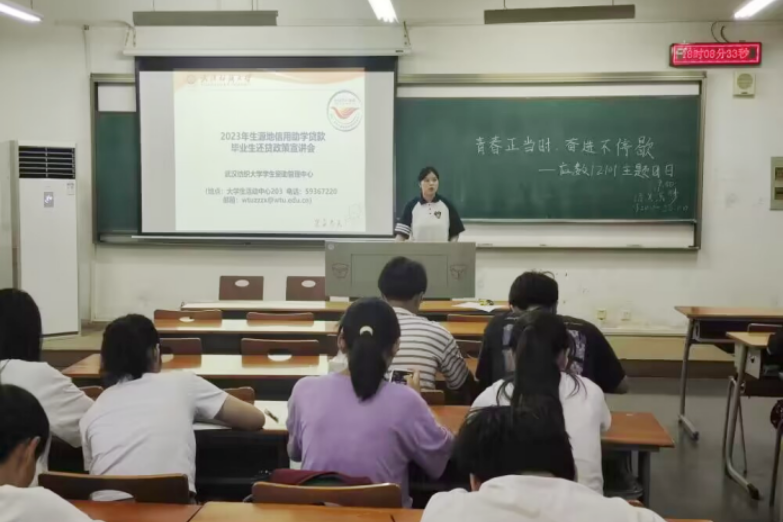 本次班会围绕2023年生源地信用助学贷款、毕业生还贷政策展开宣讲,从系统毕业确认、还款时间、还款额度、还款方式等多个方面向同学们具体阐述助学金贷款的流程。