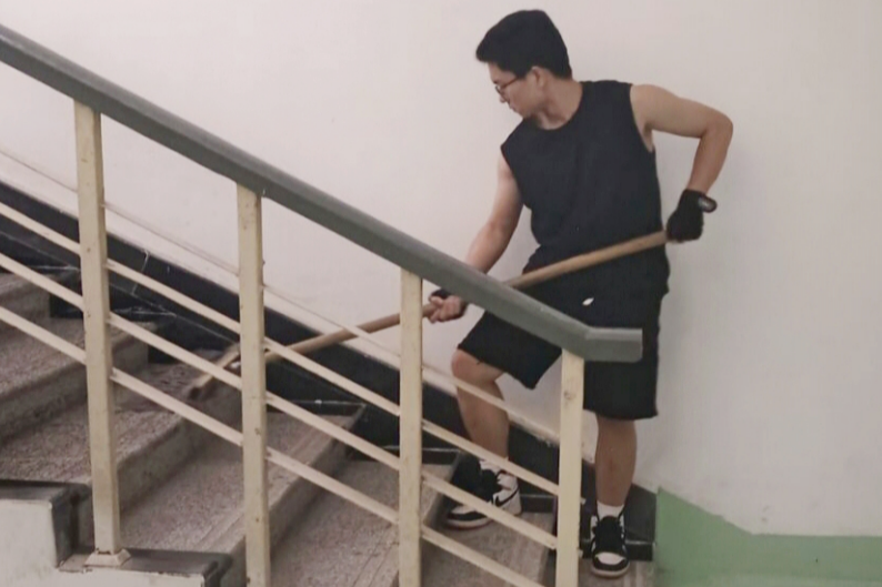 本次志愿服务活动的内容是打扫4栋教学楼的教室与楼道。在院青协活动负责人的带领下,入党积极分子们分工合作,有序对4栋教学楼进行打扫。在对教室、走廊、楼梯等区域工作内容进行明确分工后,同学们立即对4栋教学楼进行全面细致的清洁,教学楼内处处涌现着忙碌的身影。入党积极分子们不畏炎热,为了4栋教学楼整洁明亮的环境辛勤劳动,挥洒着自己的汗水。