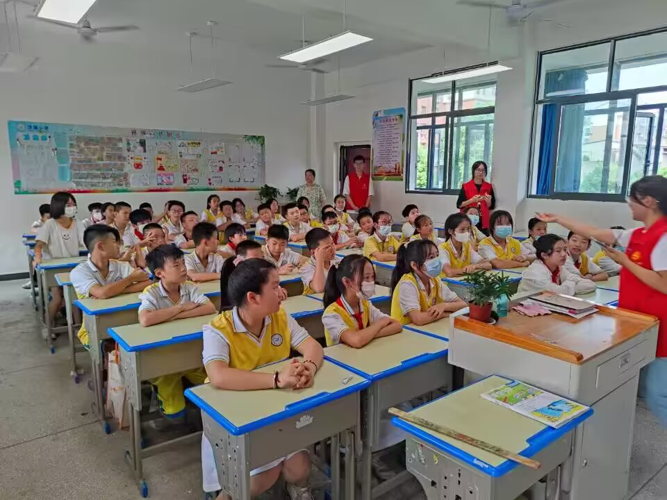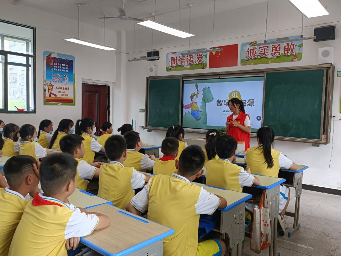 当理性、抽象、严谨的数学知识遇到有趣的符号、图画、故事,会发生什么奇妙的化学反映呢?11岁正值好奇心旺盛的年龄,为了让湖北省鄂州市洋澜小学五年级的孩子们感受到数学的趣味与魅力,在他们的心里播撒下数学的种子,7月4日,公司站“候鸟回归觅远方”暑期实践团走进洋澜小学,为孩子们带来一堂生动有趣的数学趣味课。