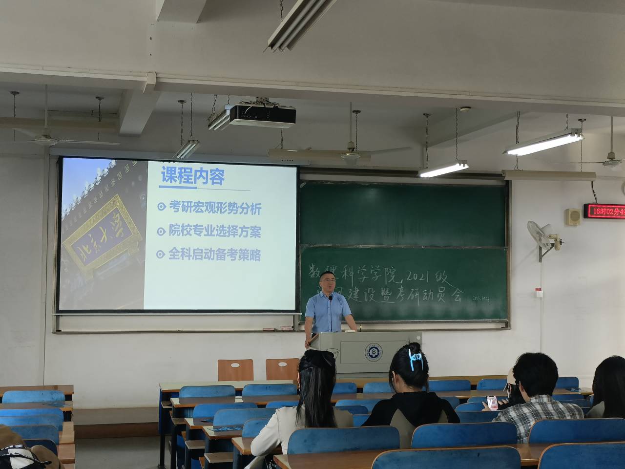 为调动十大体育网站学子考研积极性,10月24日公司在崇志楼416教室召开2021级考研动员大会,邀请校外考研机构的老师进行专业指导。公司党委副书记陈国鹏、辅导员方媛、2021级全体员工参加此次会议。