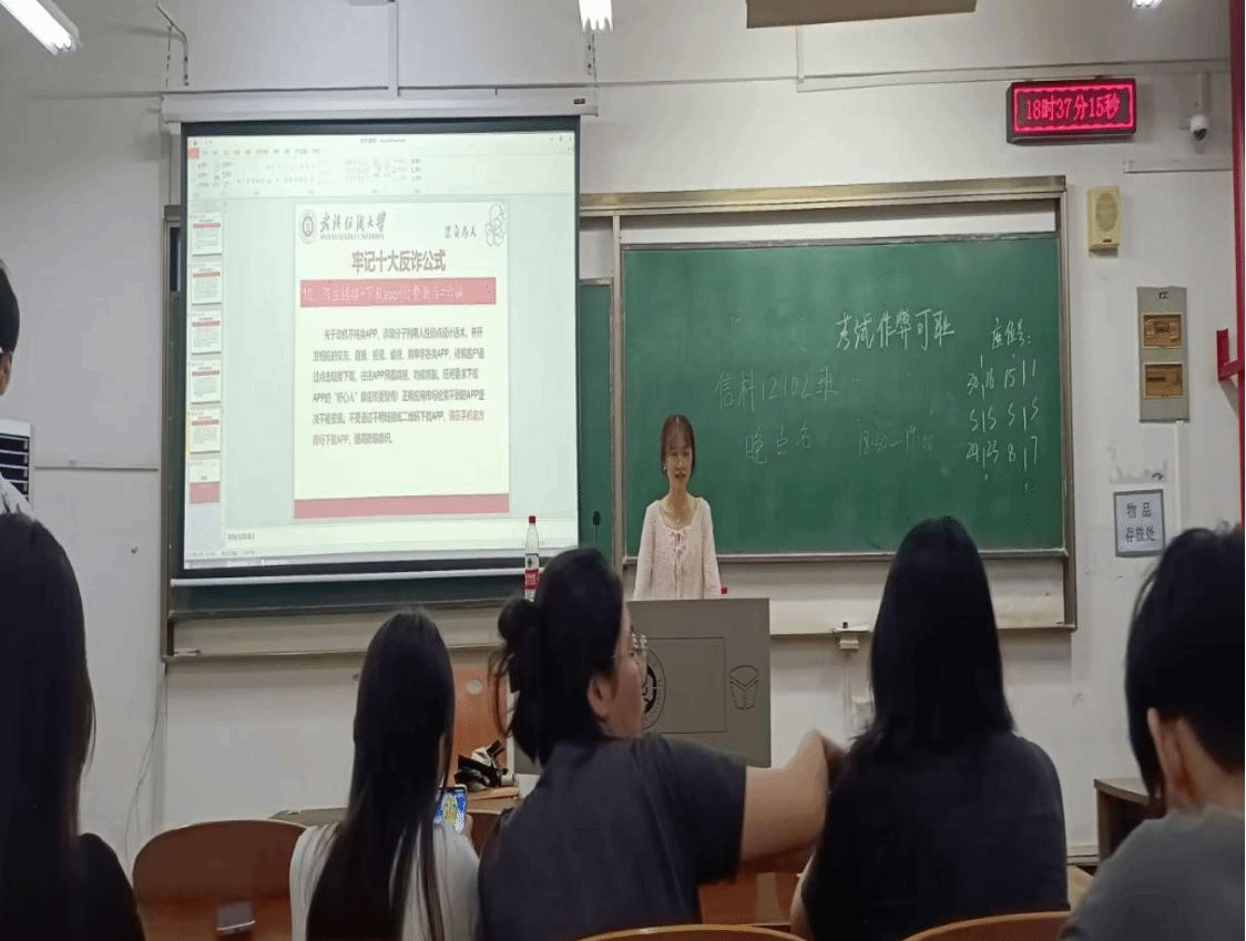 各班班长开展预防电信网络诈骗知识普及,共同学习《中华人民共和国反电信网络诈骗法》相关内容,牢记十大反诈公式。提高了同学们的防范意识。