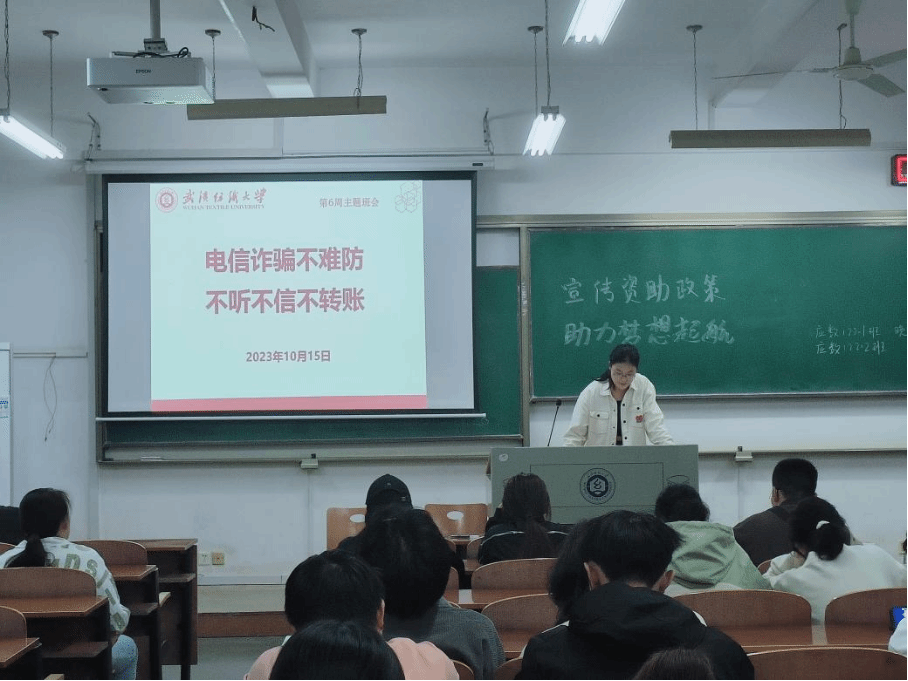 接着,各班班长向班级同学宣讲了如何防范电信诈骗,告知同学们不听、不信、不转账的防范方法,预防电信诈骗。