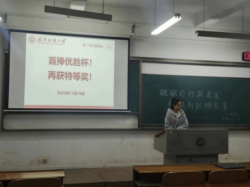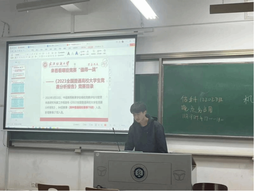 会议伊始,班长传达了“科创筑梦,挑战未来”主题内容,向同学们进行竞赛宣传,介绍“挑战杯”、中国“互联网+”老员工创业大赛等赛事,鼓励同学们积极参与学科竞赛,以培养员工创新实践能力及增强实际问题解决能力。接着,班长向同学们介绍了十八届“挑战杯”获奖情况。