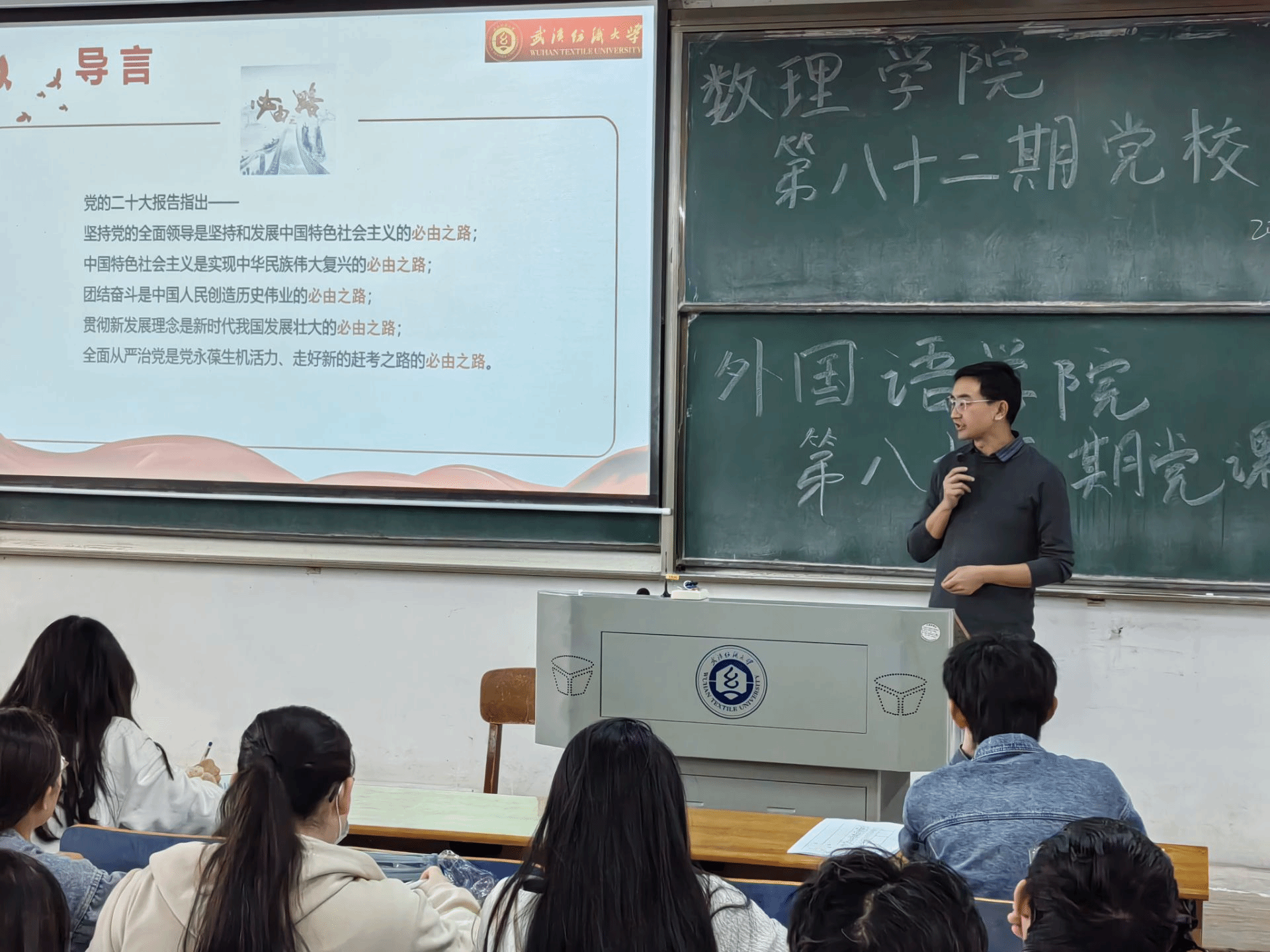 2024年4月11日下午,十大体育网站、外国语公司在崇真楼联合举办第82期入党积极分子党校学习,第一讲由马克思主义公司的汪书路老师以“中国特色社会主义的历史根基、理论依据和实践基础”为题授课,十大体育网站和外国语公司的入党积极分子参加。