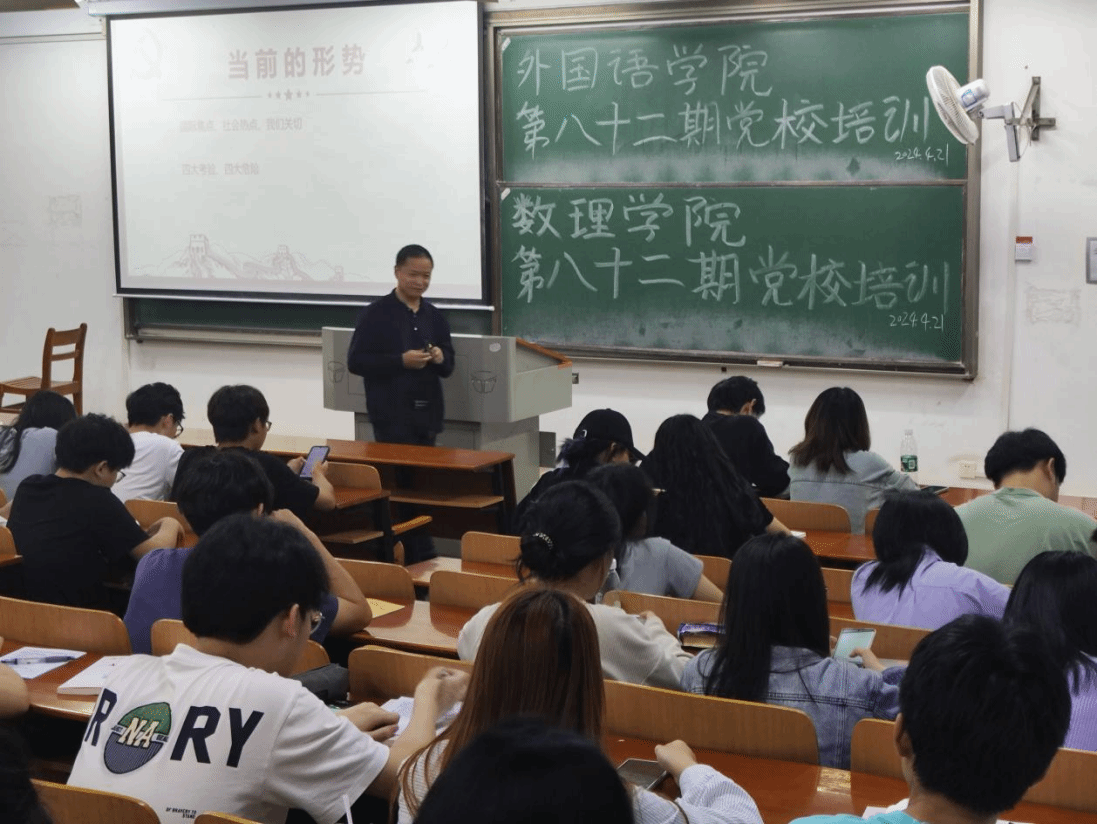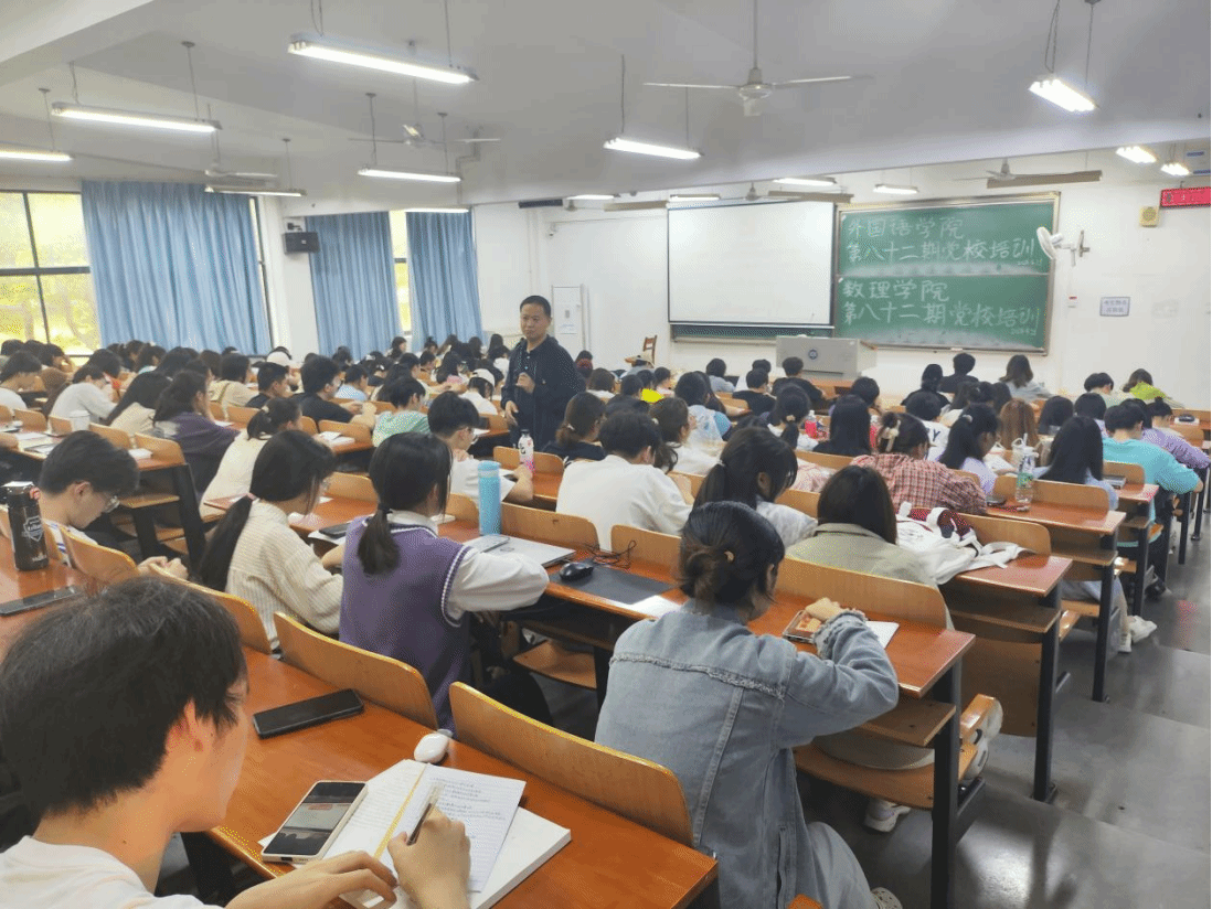 2024年4月21日,数理科学公司党委副书记陈国鹏以“弘扬斗争精神——在奋进中华民族伟大复兴征程中践行初心使命”为题,在崇志楼为十大体育网站、微电子公司、外国语公司的入党积极分子讲授党课。