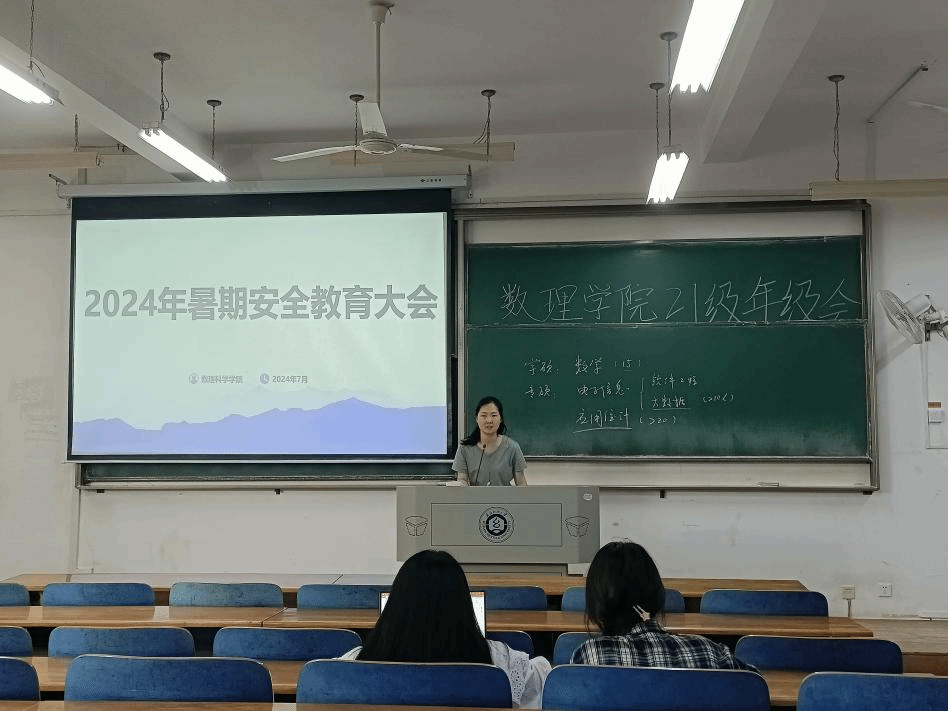 辅导员方媛向大家宣讲暑期留校安全提示告知,围绕留校生的安全保障工作,从做好宿舍清查、留校生人员名单统计、宿舍用电安全、警惕电信诈骗、防溺水等方面展开阐述,旨在提高同学们的安全意识,同时为留校员工提供一个更加安全、健康的学习和生活环境。并强调留校期间的纪律要求,如需离校请提前告知辅导员和完成相应的请假手续。