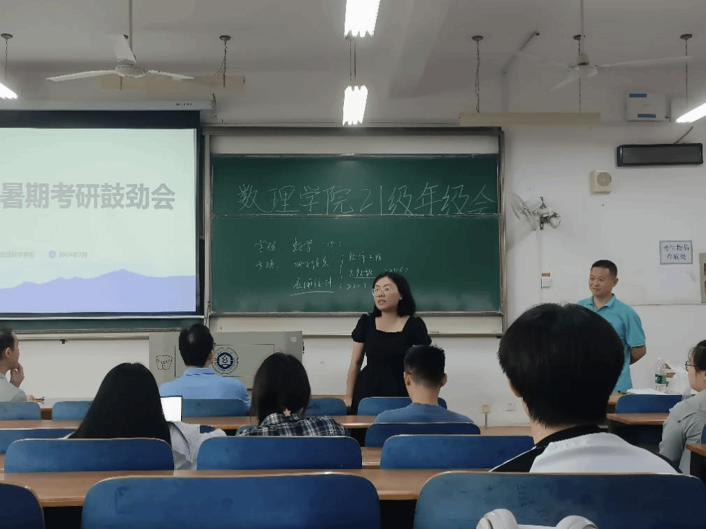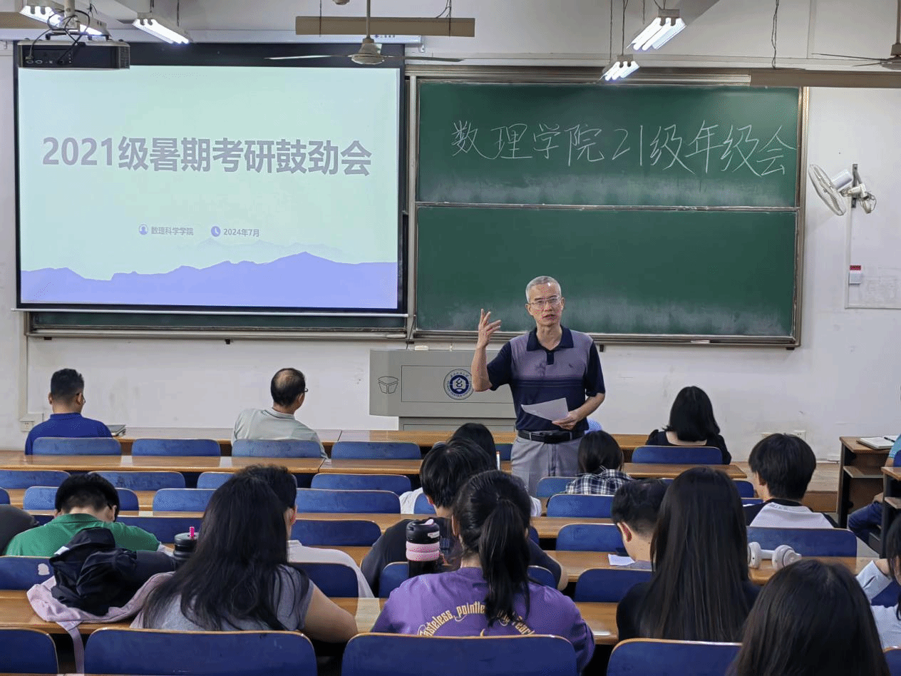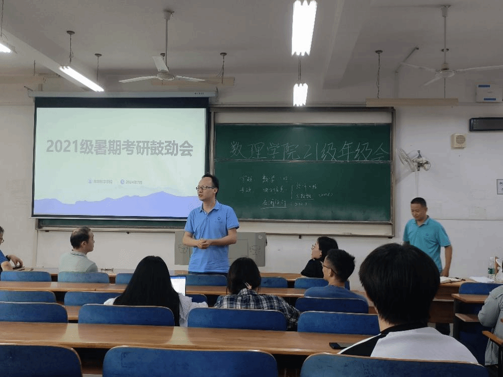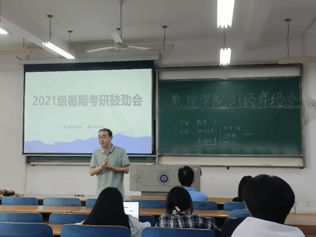 伴随着暑期的到来,数理学子全力备考,公司多措并举保障考研学子需求,7月12日下午,十大体育网站于崇志楼117教室开展考研鼓劲会,十大体育网站经理汪胜祥、经理党委书记段溢波、副经理郑仟、党委副书记陈国鹏亲临教室为大家鼓劲打气、专业教师及班主任王彦波老师、付红波老师、黄熙老师、钟毓老师,为同学们分享考研经验、答疑解惑。本次会议由陈国鹏书记主持,21级辅导员方媛及全体考研的同学参与本次会议。