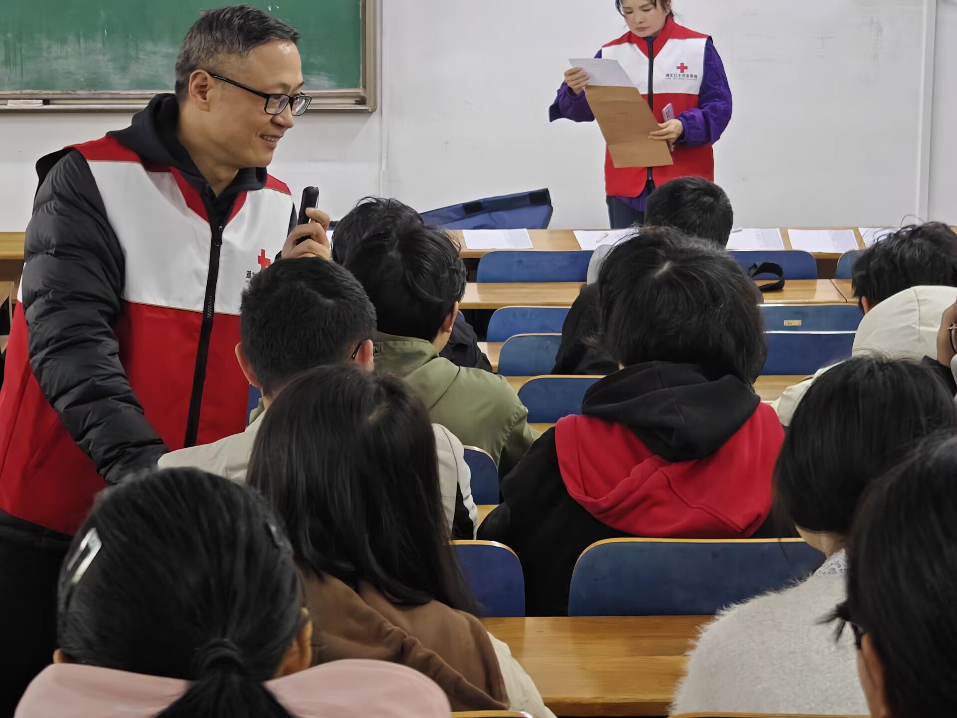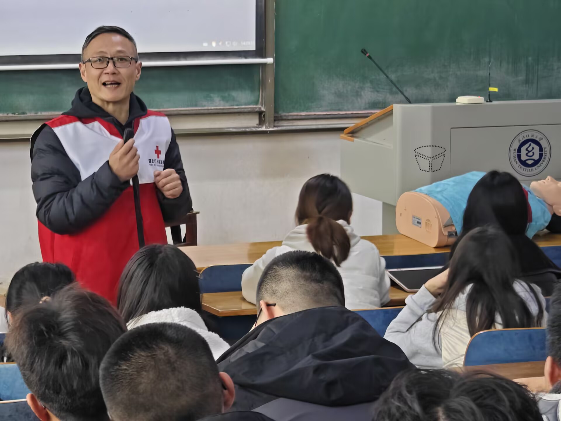 讲座伊始,李伟导师以近期高校突发事件为切入点,通过真实案例的深度剖析,向在场师生揭示了"急救技能缺失可能导致的严重后果",用数据论证了"急救知识应成为现代人必修课"的核心观点。在理论讲解环节,导师创新采用启发式教学法,通过"意识判断三步骤""呼吸观察四要素"等结构化知识模块,配合情景问答的互动形式,引导同学们逐步构建院前评估的完整知识体系。