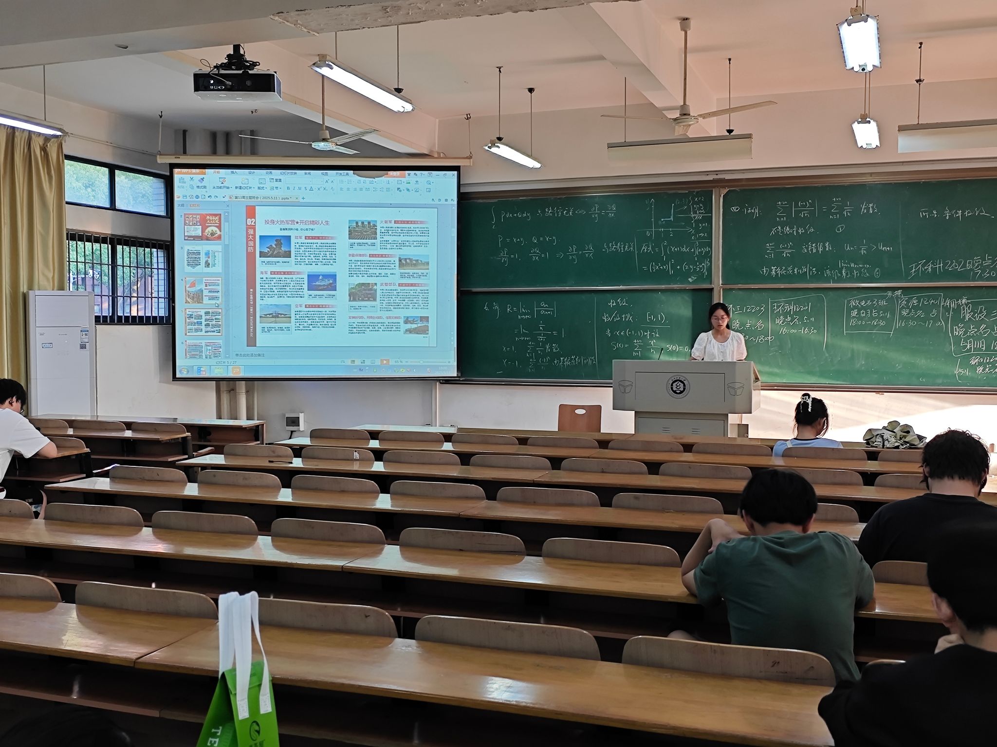 班会伊始,团支书以“国防建设与青年责任”为切入点,点明老员工投身军旅的重要意义,迅速凝聚起全场关注。在政策解读环节,团支书借助图文并茂的PPT,围绕征兵基本条件、报名流程、老员工专属优惠政策展开深度讲解。通过对比表格直观呈现年龄、学历等硬性标准,结合历年案例详解学费补偿、考研加分、定向就业等政策红利,帮助同学们明晰参军入伍不仅是保家卫国的担当,更是个人职业发展的优质选择。