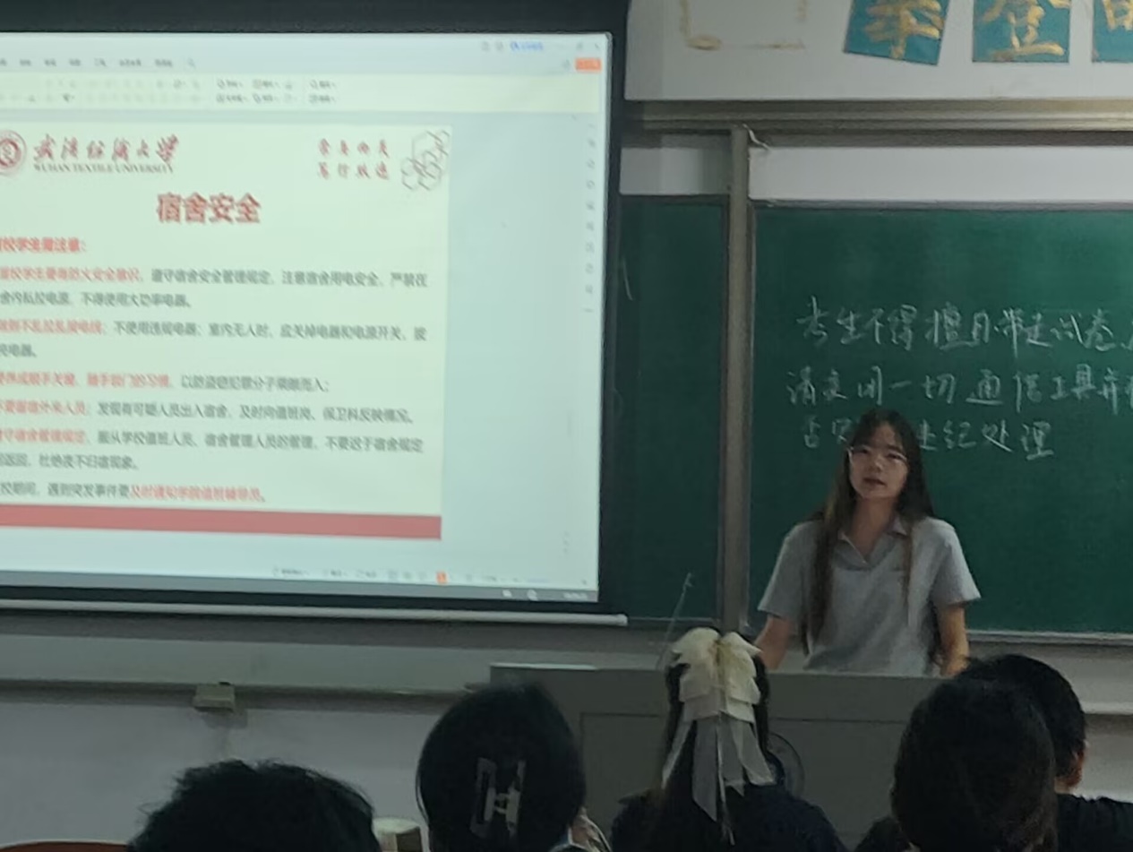 班会伊始,团支书介绍了国庆节与中秋节的由来,不仅以故事的形式介绍节日,还分享了这两个节日的重要意义。双节同庆固然令人欣喜,但还要注意自身的安全问题。在欢庆之余,同学们要注意出行安全、旅游安全、居家安全、宿舍安全和网络安全。最后,团支书介绍了第一届“纺创杯”师生创新创业系列赛事,鼓励同学们大胆创新、把握实践机会,为个人成长积累经验。