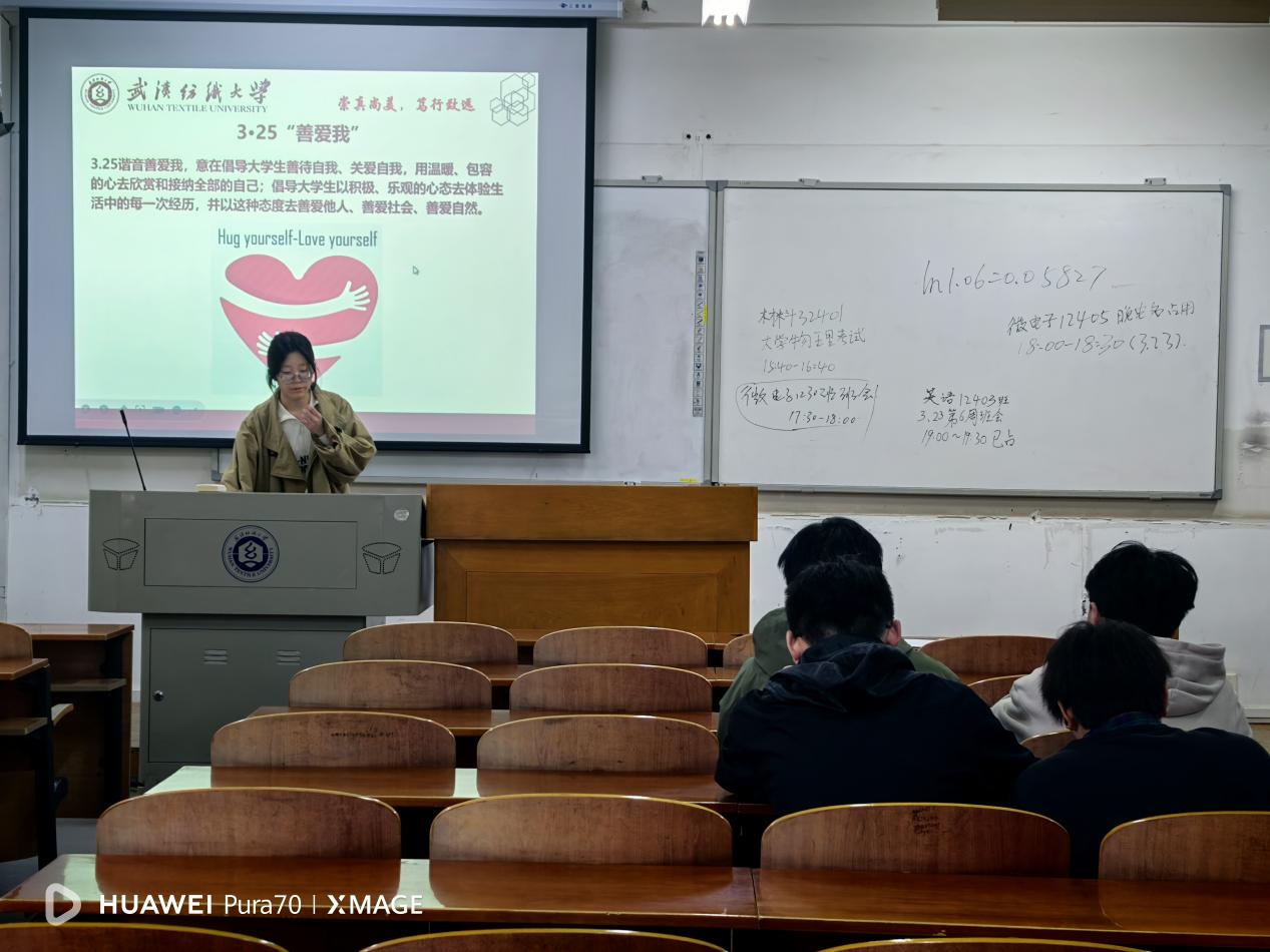 班会伊始,各班班长介绍了“善爱我”理念的起源——“3.25”谐音“善爱我”,由西南交通大学心理研究与咨询中心主任宁维卫教授予2012年首次倡议并发起,意在倡导大家善待自我、善爱他人和社会。随后,各班班长播放了动画短片《飘》, 影片展现了父亲从最初试图隐藏儿子的“不同”,到最终选择支持并接纳他的转变,传递出父母应尊重孩子的独特性,并鼓励他们勇敢做自己的价值观,温暖地传递出“每一个特别的人,都值得被爱”,这引发了同学们的强烈共鸣。