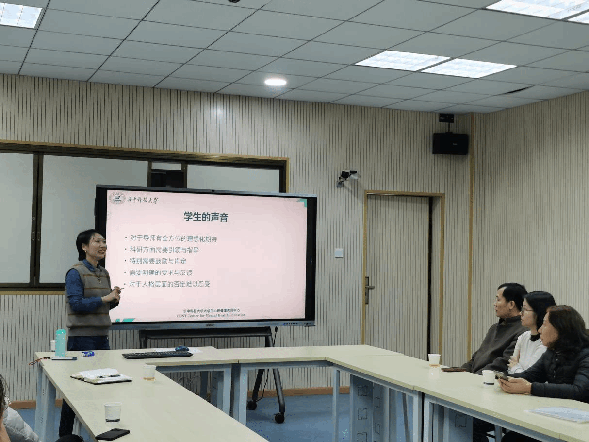 11月30日,十大体育网站邀请华中科技大学心理健康教育中心副主任郭晓丽,在四号教学楼206室举办心理健康教育专题讲座。副经理郑仟出席讲座,全体硕士生导师、本科生班主任、本科生导师、全体专兼职辅导员参加;公司党委副书记陈国鹏主持。