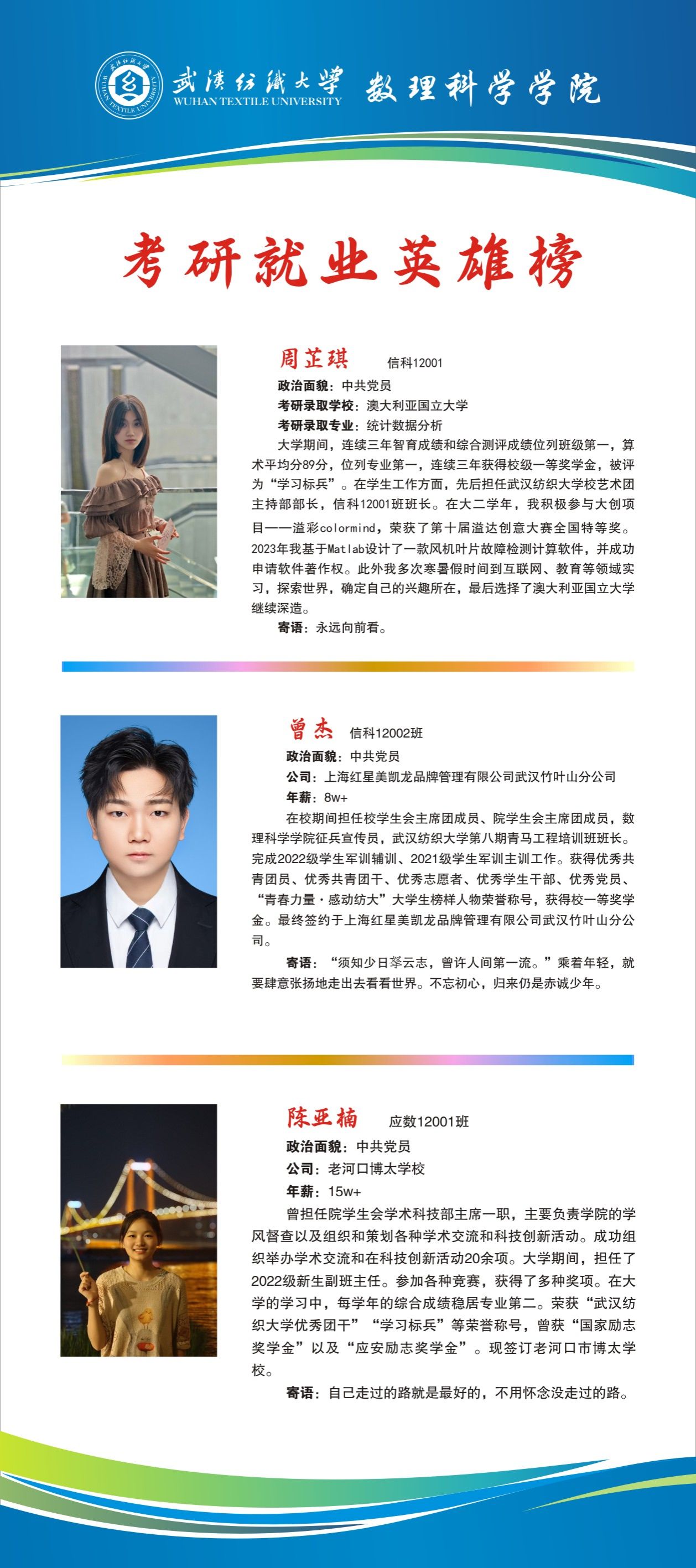 上一条:2024届考研就业英雄榜——贺柳、黄燕姿、卢颖椒 下一条:2024届考研就业英雄榜——吴浩然、姚晓波、郑芋婷
