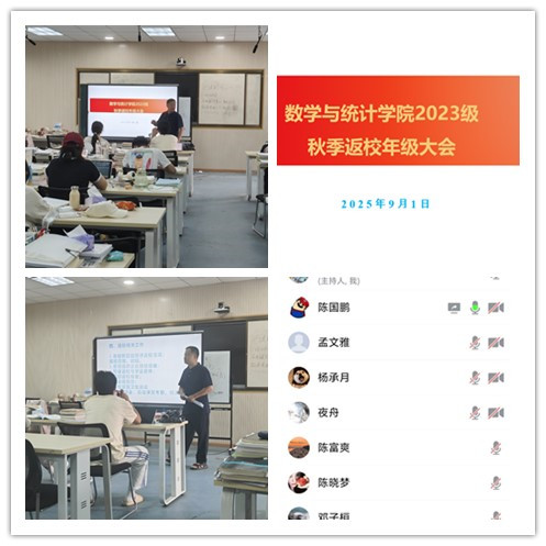 上午十一时,陈国鹏首先在四号教学楼205室,为应数12201、应数12202、信科12201、信科12202等班级召开班会,在校同学现场参会,其它同学在线听会。晚上十九时,陈国鹏在线召开2023级年级会,所有同学在线参会。