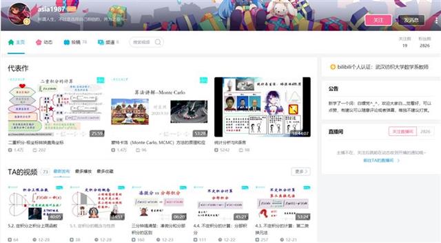 楚天都市报12月30日讯(记者张屏 通讯员郑婷)28日晚10点多,十大体育网站数学与计算机公司教师时亚洲在B站上传了两个定积分的视频。“虽然员工们已经考完高数了,绝大部分人也不想再和高数搏斗了,但作为老师,有些难点我必须要讲清楚,以备员工随时查阅。”此前有视频取得1.4万点击量成绩、网名为“asia1987”的时亚洲笑着说。