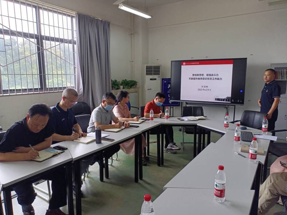 陈国鹏以《贯彻新思想,增强战斗力,不断提升教师意识形态工作能力》为题做了学习报告。他围绕意识形态的内涵、特点及重要性,高校意识形态工作面临的挑战,高校教师意识形态工作能力提升等三个方面汇报了自己的体会。并提出高校主流意识形态话语责任主体是广大教师,牢牢掌握高校意识形态话语权需要依赖广大教师亲自实践和榜样示范,只有广大教师真信、真学、真用,才能增强广老员工对主流意识形态的接受度。
