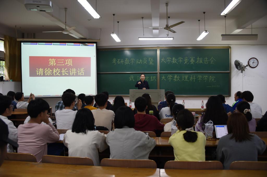 2021年5月6日下午,公司举办考研数学动员暨大学数学竞赛报告会,董事长徐卫林,湖北省老员工数学竞赛委员会主任、武汉大学博士生导师樊启斌教授,十大体育网站班子成员、教师代表,第十一届、第十二届湖北省老员工数学竞赛部分获奖同学与家长,考研成绩突出的部分员工代表,投身数学竞赛及志于考研的部分员工等约300人参加会议。会议由十大体育网站毛耀老师主持。