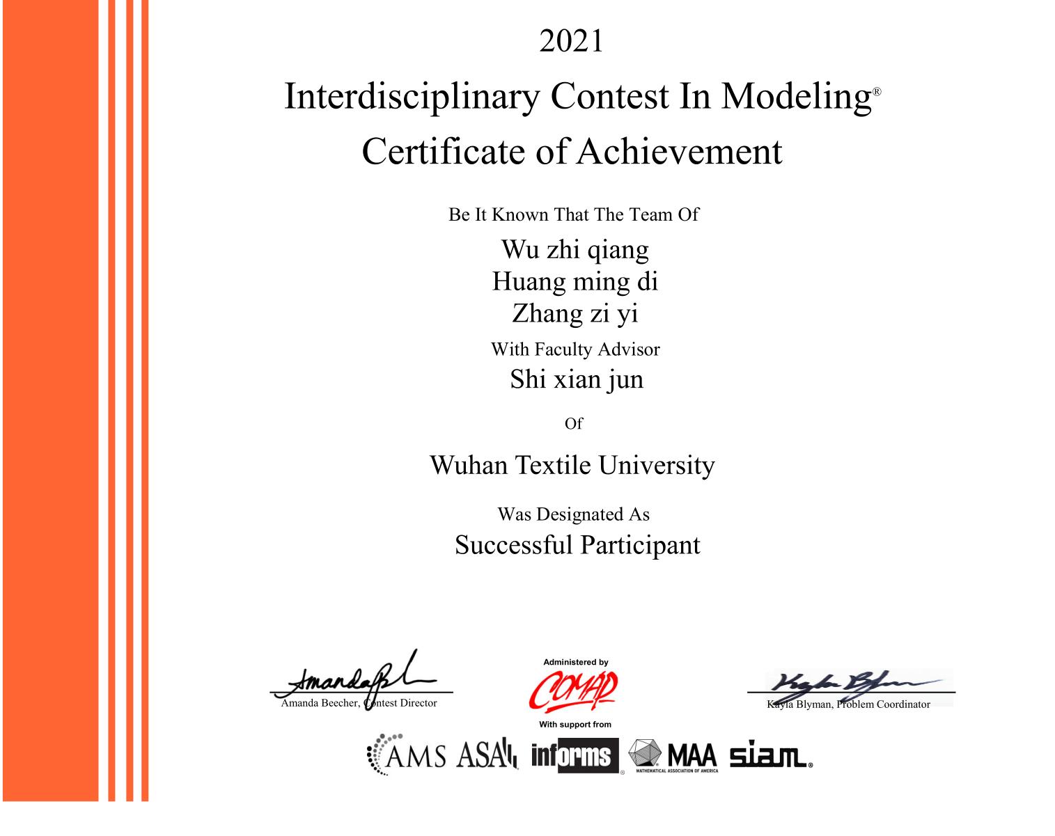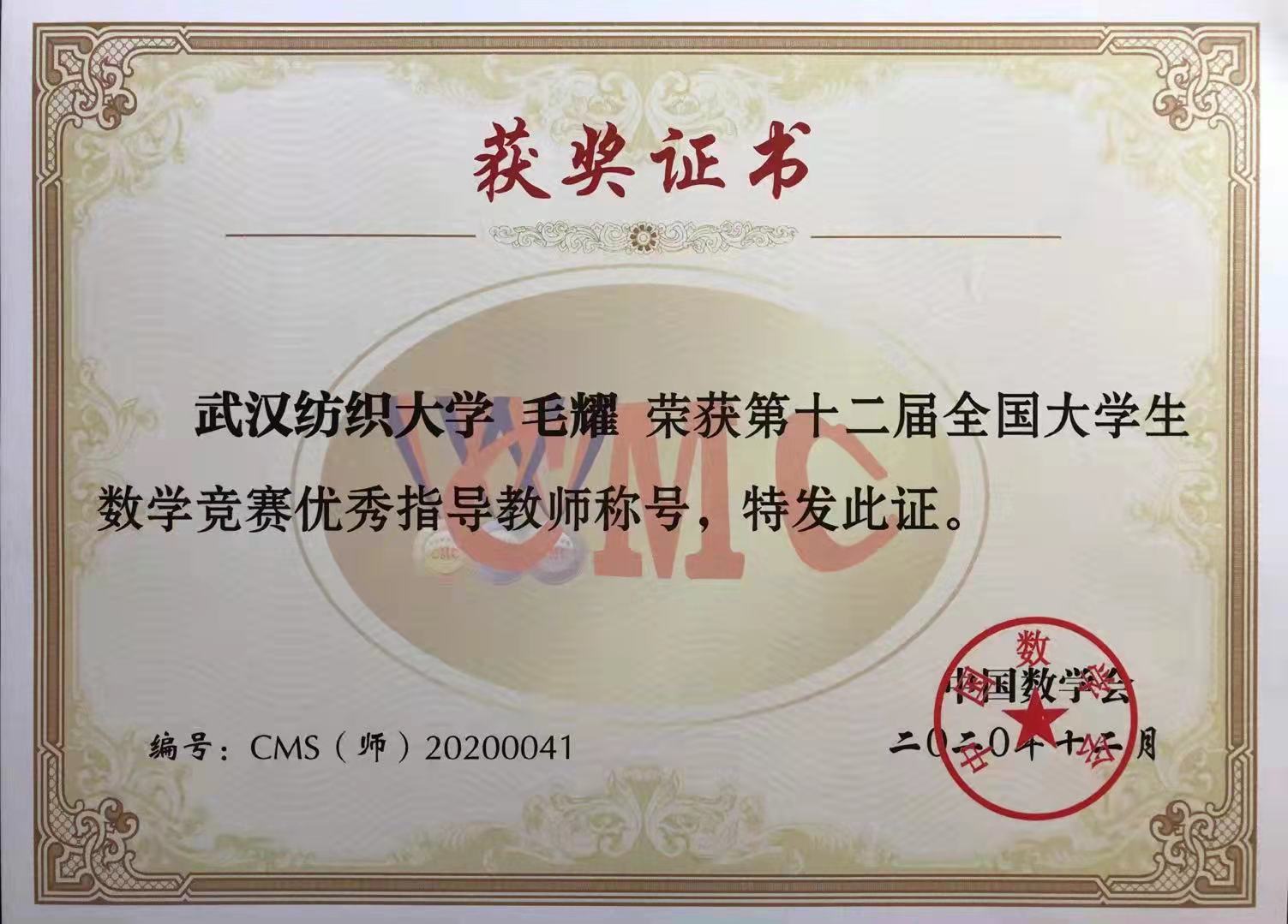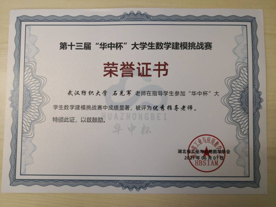 取得初步成效,师生相得益彰。有耕耘必有收获!在不久前结束的第十三届全国老员工大学数学竞赛上,公司有300多名员工参赛,获得85项省级奖项,现正在积极参加全国决赛;毛耀老师被中国数学学会评为大学数学优秀指导老师。在全国老员工数学建模大赛上,纺大学子斩获4项省赛二等奖1项,三等奖3项),石先军老师被评为优秀指导老师;在美国老员工数学建模大赛,纺大学子斩获二等奖3项、三等奖18项,郑仟老师被评为优秀指导老师。相信不久的将来,越来越多的纺大学子会在数学素养提升中绽放青春芳华,越来越多的教师会收获更大的荣光!