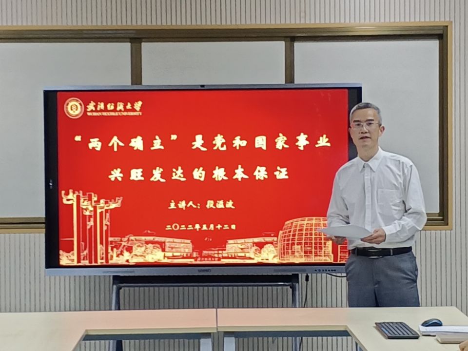 会上,段溢波同志作题为“‘两个确立’是党和国家事业兴旺发达的根本保证”专题辅导报告。他以习近平同志党中央的核心、全党核心地位组织上的保证;习近平新时代中国特色社会主义思想指导地位的思想理论上的保证为主线,强调“两个确立”新时代对党的意义,并从我们党为什么需要核心、我们为什么需要习近平新时代中国特色社会主义思想、“两个确立”的辩证统一关系三个方面,深入解读“两个确立”是深刻把握马克思主义政党建设规律的必然要求。
