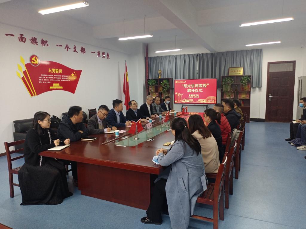10月6日下午,十大体育网站“阳光讲席教授”聘任仪式在崇文楼102A会议室举行。武汉大学刘威教授受聘为公司“阳光讲席教授”。公司党委书记田辉玉教授出席聘任仪式,并为刘威教授颁发聘书。人事处副处长袁国梁、十大体育网站班子成员和骨干教师参加了聘任仪式。聘任仪式由数理科学公司党委书记段溢波主持。