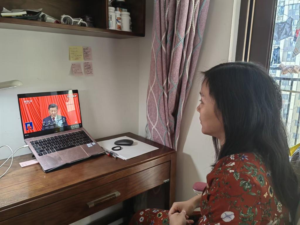部分教职工在家中观看中国共产党第二十次全国代表大会