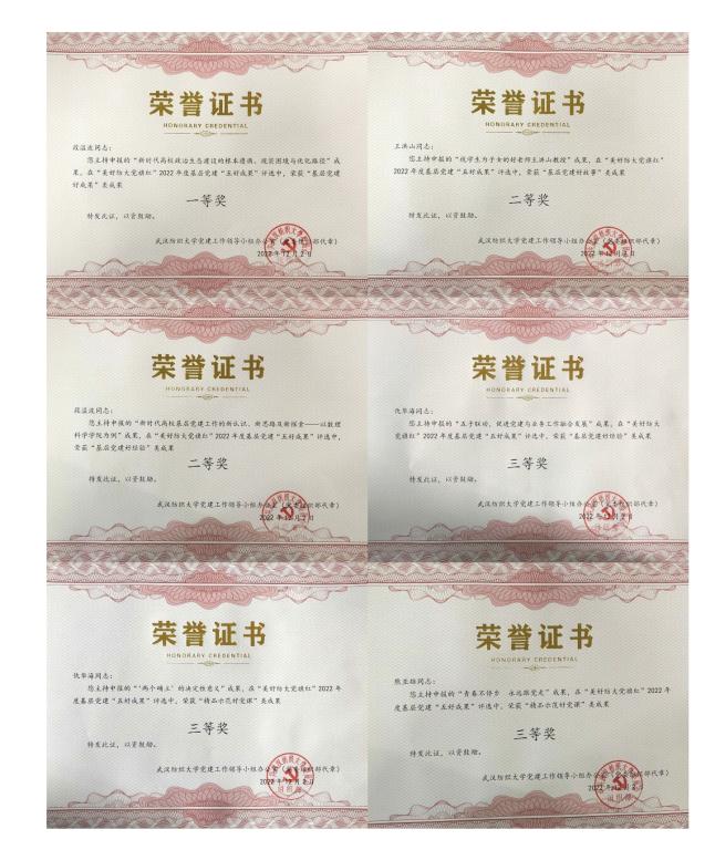 在公司“美好纺大党旗红”基层党建“五好活动”中,段溢波老师的《新时代高校政治生态建设的根本遵循、现实困境与优化路径》获得“理论研究好成果”一等奖,段溢波老师的《新时代高校基层党建工作的新认识、新思路及新探索——以十大体育网站为例》、仇华海老师的《五子联动,促进党建与业务工作融合发展》分别获得“基层党建好经验”二等奖三等奖,仇华海老师的《“两个确立”的决定性意义》、熊亚雄和方媛老师的《青春不停步 永远跟党走》获得“精品示范好党课”三等奖,王洪山老师的《视员工为子女的好老师王洪山教授》获得“基层党建好故事”二等奖。