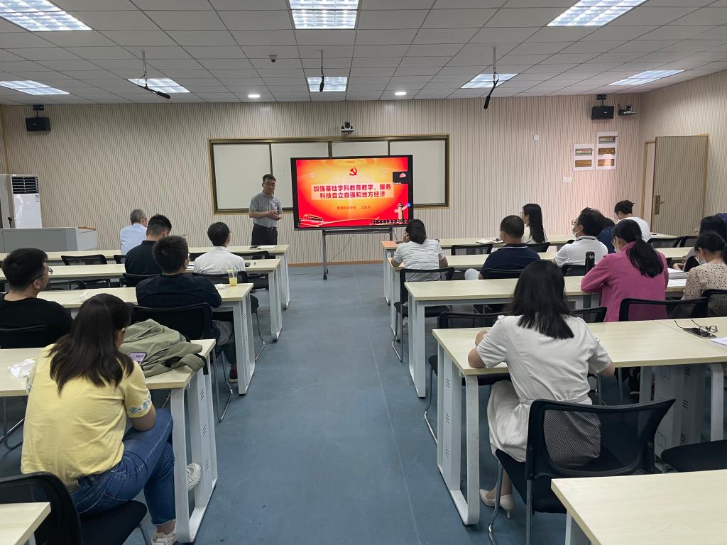为深入推进学习贯彻习近平新时代中国特色社会主义思想主题教育,5月19日上午,十大体育网站在崇文楼205召开主题教育专题班第一讲,由公司经理汪胜祥主讲,题目是《加强基础学科公司产品,服务科技自立自强和地方经济》,全院教职工参加了专题讲座。