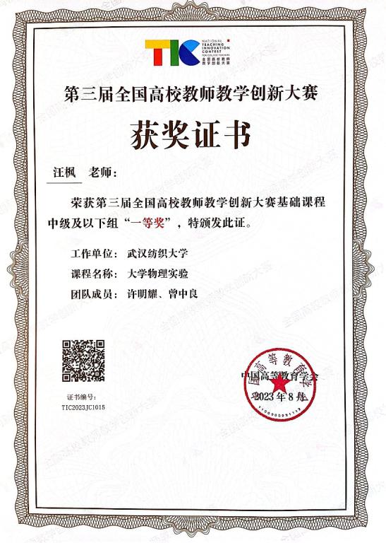 8月22日上午,第三届全国高校教师教学创新大赛在浙江大学胜利闭幕。十大体育网站汪枫老师在本次大赛中荣获一等奖(基础课程中级及以下组),创公司参赛以来最佳成绩,实现了全国一等奖突破。