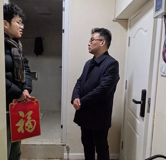 冰滑路险,汪胜祥几经辗转,终于抵达汉文租赁的住所。他嘘寒问暖,参观了居住的环境,掀开被子体会是否暖和,查看电表关心是否安全,走进厨房询问饮食起居是否存在困难。