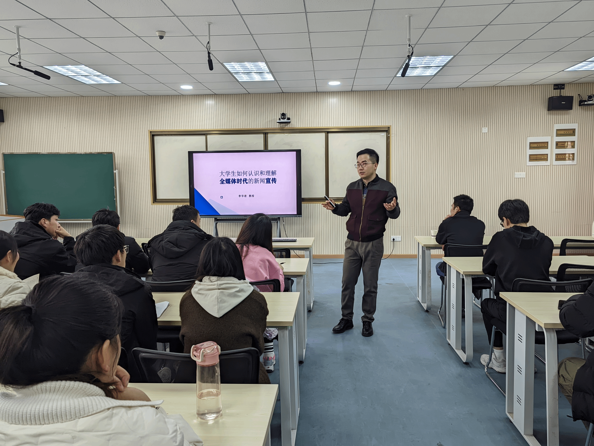 李华君通过大量鲜活、详实的案例分析,向同学们生动阐述了学习实践习近平文化思想的时代价值。他指出,信息时代信息泛滥、真假难辨,舆论多元化,公众意见复杂化,逆全球化浪潮下,主流舆论破圈出海壁垒重重。作为新时代青年,应秉承以人民为中心的思想,合理拥抱新兴生产工具,以“Z时代”人群的独特视角,向世界展示可信可爱可敬的中国形象,把爱自己与爱国家完美统一。